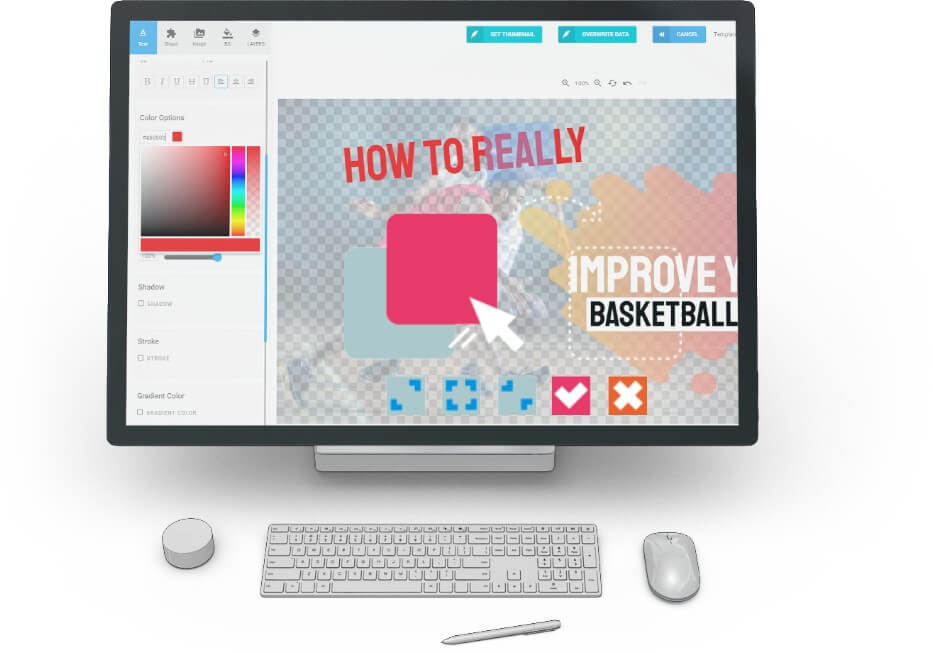 Each template can easy be customized to fit your needs. You can Drag and drop anything, Resize, Change Text and Fonts. Add new elements… Just drag… and drop. You are in total control! Everything is very easy with our Point and CLICK interface. Create your thumbnails for any style of video – 16:9, 4:5, 4:4 or any size that you want.